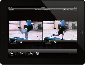 Another feature of the JVC CAM Coach app is the Simultaneous Playback function, which enables two videos (already transferred to the tablet) to be viewed side-by-side simultaneously. Immediate comparison will help you spot inconsistencies in the same athlete's form over time, or analyse differences between two athletes to find way to improve performance.
