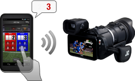 Based on index marking technology, this function lets you use your smartphone to keep a running tally of the score of a game in progress while you record it on Procision GC-PX100. Freely downloadable app "Wireless sync." will be provided with scoring templates to accommodate a variety of sports, including those with games and/or sets within a match, or different point values for different types of plays. Each tap on your smartphone will input the corresponding number of points to keep you on top of the game.