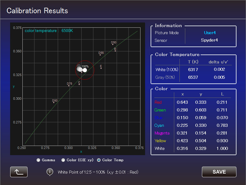 Precise calibration can be performed in just a few easy steps, so you can count on optimal images regardless of the installation situation of the projector such as its location, lens shift/zoom position, etc. What's more, it can also be used to compensate for colour balance shift that can occur when using the projector over long periods of time, assuring that the projector can always be used in optimised condition.