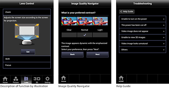This innovative App also offers a function to automatically set to the optimum picture setting when the user selects a desired picture quality.