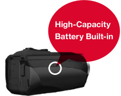 With a high-capacity battery built into the camcorder, you’ll have plenty of power to shoot entire events without worry, and with no risk of damage by having to change the battery in bad weather.