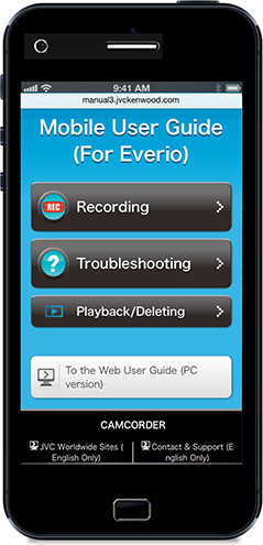 - Select a language and your Everio’s model name, then the site will show the Mobile User Guide.