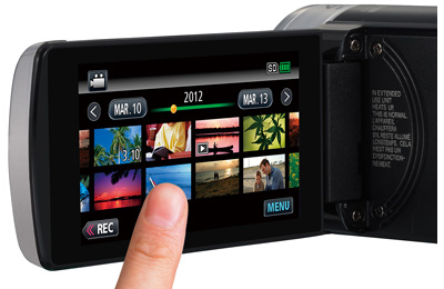 Just touch on the various function icons and thumbnail pictures that are displayed on the LCD screen. The uniformly flat surface responds instantly to your touch commands, with a frameless design to assure comfortable touch access even for functions displayed on the extreme right or left.