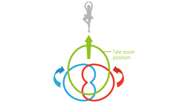 The new zooming microphone changes the focal point to match the picture, so you can always hear what you see. Sound focus changes from wide to tele. This reduces stereo separation and increases mic gain when zooming.
