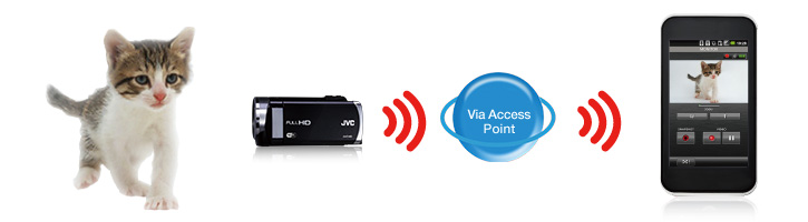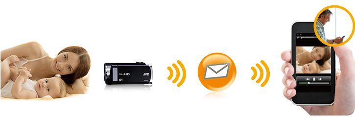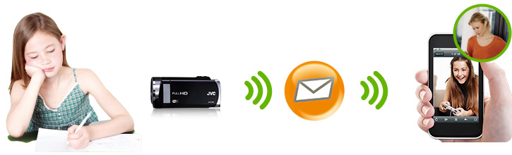 This one-to-one wireless connection of Everio to a smartphone or PC allows real-time monitoring from another room.