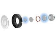 A pair of magnets on the driver unit create optimal magnetic force, reproducing responsive bass, a tight mid-range and crisp highs.